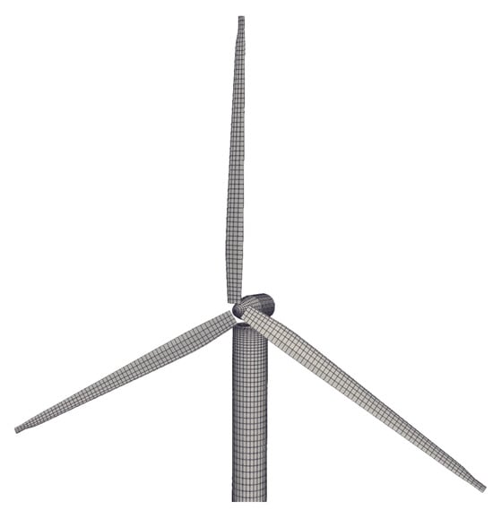 Figure 3 shows the mesh of the complete DUST numerical model of the NREL-5 wind turbine.