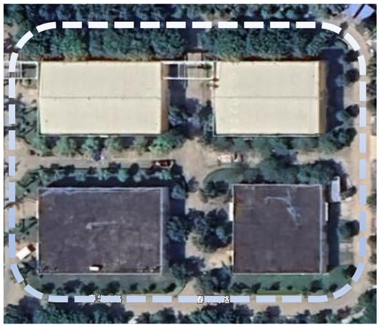 During the mileage measurement, the vehicle was fully charged and driven at an average speed of either 15 km/h or 20 km/h in the same road section until it stopped automatically. The test was conducted at a relatively stable speed, devoid of pedestrian or other vehicle interference. The parameters of the lithium battery are detailed in Table 2. The satellite map depicting the test road environment is presented in Figure 3, with the test route delineated by a dotted line.