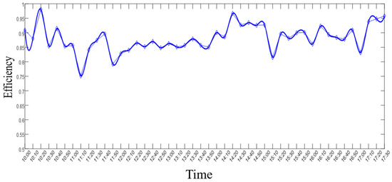 Efficiency–time curve of solar cell DC–DC output terminal.