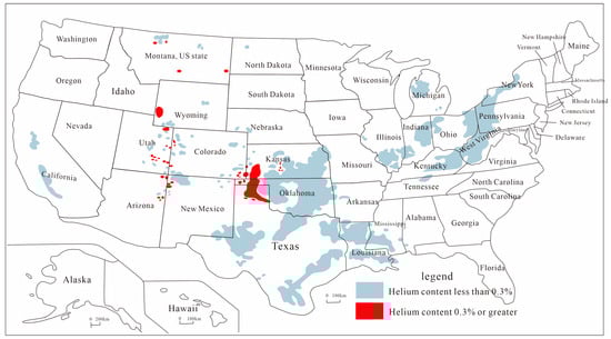 Distribution of helium resources in the United States (from Danabalan D. 2017 [16]).