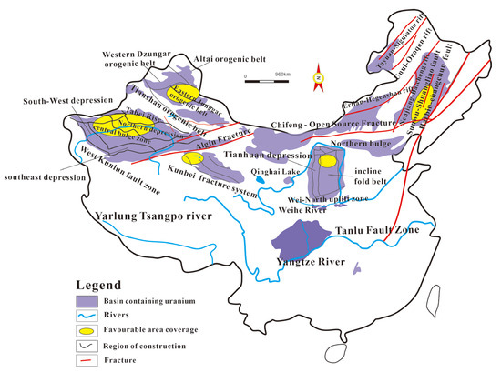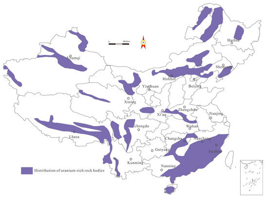 Research on the genesis of helium types has shown that most basins in China have crustal sources of helium, and the helium source rocks in China are mainly rich in uranium-containing granites in the crust. These types of rocks are mainly distributed in tectonic-magmatic activation zones on the edges of cratons, fold belts in orogenic zones, and active continental margins. The fold belts on the edges of cratons generally developed along the margins of the Archean continental nucleus and later underwent strong folding, metamorphisms, and granite transformations to form these rocks. After multiple tectonic movements in large orogenic belts, basement rocks and granites with a high uranium content are the main helium source rocks. Based on the above conditions, we conducted a survey of the strata in China and drew a distribution map of the helium source rocks in China.