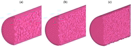 Visualization of the computational mesh for 3 concentrations: (a) coarse mesh; (b) medium mesh; (c) fine mesh.
