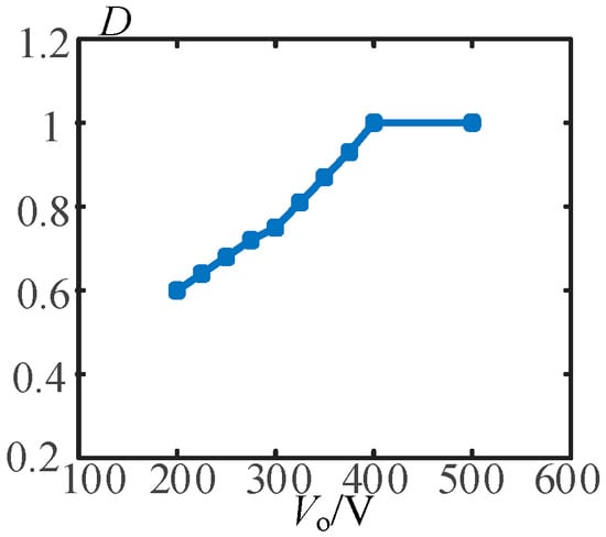 For simplicity and practicality, the adaptive duty cycle D can be summarized as a function of the reference output voltage based on the time-domain calculation results. Figure 11 is the fitted curve of the adaptive duty cycle D and reference Vo, and the fitted equation is shown in (12).