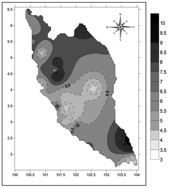 | Masseran et al., 2012 [23] | Weibull (WE), Burr (BR), Gamma (GA), Inverse Gamma (IGA), Inverse Gaussian (IGU), Exponential (EX), Rayleigh (RY), Lognormal (LN) and Erlang (ER) | Mean wind speed map indicating higher wind speed area in Malaysia | The paper highlights there are locations which are higher in wind speed and mainly located at the northern Malaysian Peninsula. This is similar with this paper’s findings |