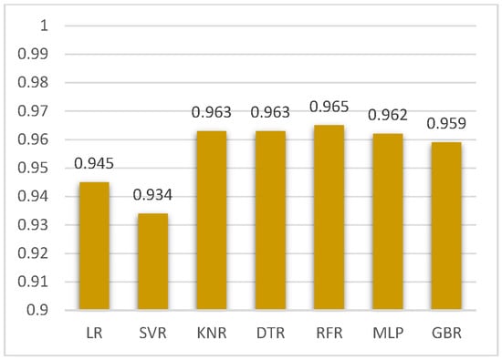 Figure 7 of the study illustrates the R2 values acquired from numerous regression approaches. The vertical axis indicates the numeric values ranging from 0.82 to 1.0, and R2 values obtained using each regressor model are shown in the plot.