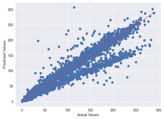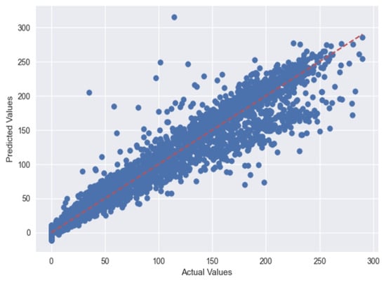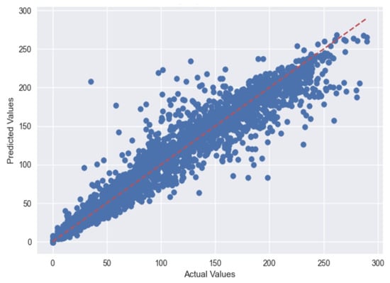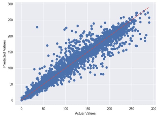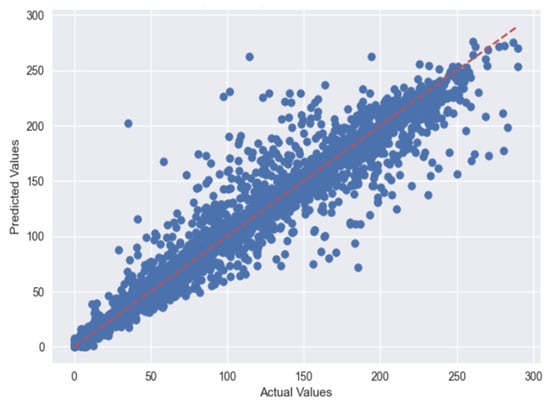 Figure 10 depicts the actual vs. predicted plots using the MLP regressor, and Figure 11 depicts the actual vs. predicted plots using GBR for Case 1.