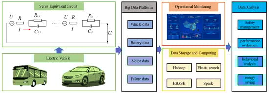The actual operation data of all electric vehicle power batteries involved in this report come from the cloud-based commercial power battery big data platform in cooperation with the School of Electronics and Electronic Engineering of Hubei University of Technology [30], as shown in Figure 1. The data from the platform are transmitted in real time through a wireless communication module in the vehicle’s terminal system. The data collection for the vehicle terminal consists of three parts: the battery management system (BMS), the vehicle controller, and the Global Positioning System (GPS). The BMS gathers data on the battery’s voltage, current, temperature, and charge status. The vehicle controller gathers data on motor speed and torque. The GPS is responsible for collecting data on vehicle position and acceleration. The data collected by the above three parts are interacted with and transmitted by the Controller Area Network (CAN), and the data are transmitted to a wireless communication module in time sequence. The big data platform will store, decode, and monitor the received data.