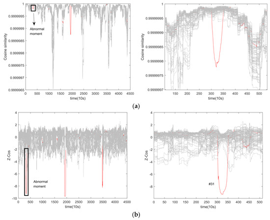 Application of cosine similarity method on car 2. (a) Original calculation results. (b) Calculated results after normalization of Z-score.