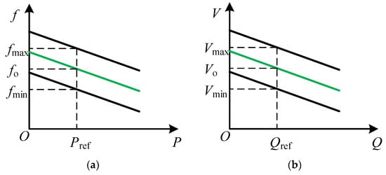 Figure 7. Droop control curves. (a): P-f control; (b): Q-V control.