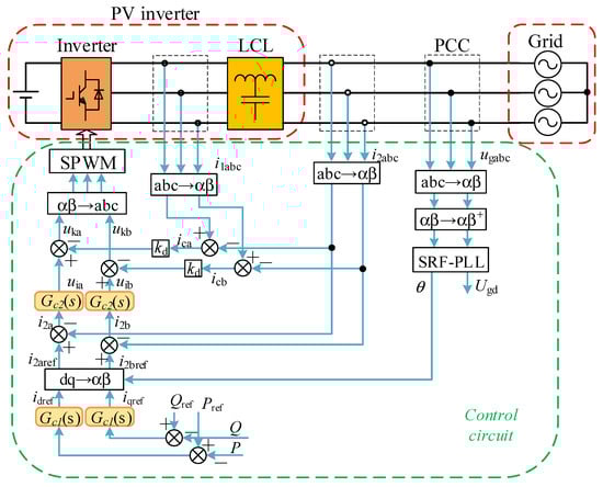 An important technique to address the issue of stability and reliability of PV systems is optimizing converters’ control. Power converters’ control is intricate and affects the overall stability of the system because of the interactions between different control loops inside the converter, parallel converters, and the power grid [4,5]. For a grid-connected PV system, inverters are the crucial part required to convert dc power from solar arrays to ac power transported into the power grid. The control performance and stability of inverters severely affect the PV system, and lots of works have explored how to analyze and improve PV inverters’ control stability [6].