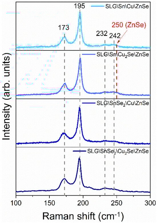 Raman spectra of CZTSe films from different stacks. The figure is reproduced with permission [87].