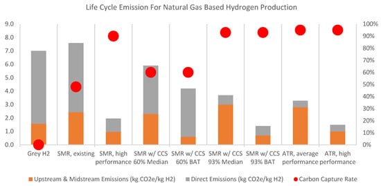 Life-cycle emission for natural-gas-based hydrogen production [8,18].