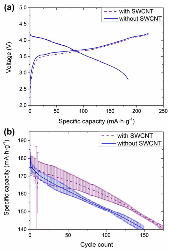 - Landi, B.J.; Ganter, M.J.; Cress, C.D.; DiLeo, R.A.; Raffaelle, R.P. Carbon Nanotubes for Lithium Ion Batteries. Energy Environ. Sci. 2009, 2, 638. [Google Scholar] [CrossRef]