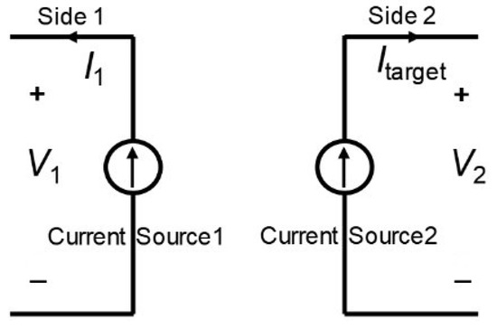 where and are the voltage and current of Side 1, respectively; and are the voltage and current of Side 2, respectively; and is the efficiency of the DC/DC converter.