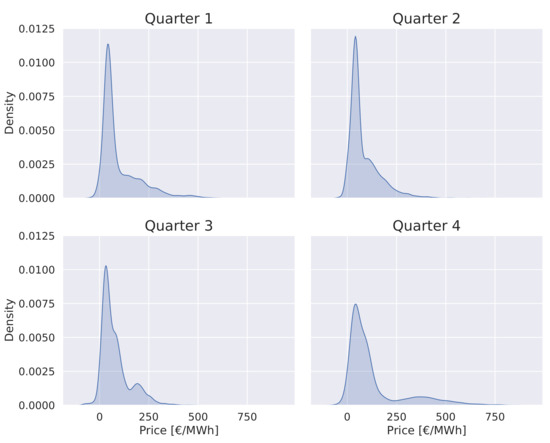 In this subsection, a comprehensive analysis of the electricity price time series is presented, thereby starting from its fluctuation at the quarter and monthly levels and ending at the hour level for each average month.