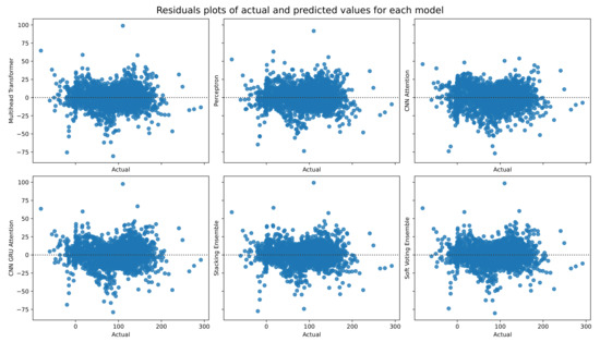 Figure 15, the residuals between actual and predicted values are plotted, so it clearly shows the performance of each model. The specific plot shows that all the models behaved approximately the same; they presented common prediction characteristics and prediction residual outliers.
