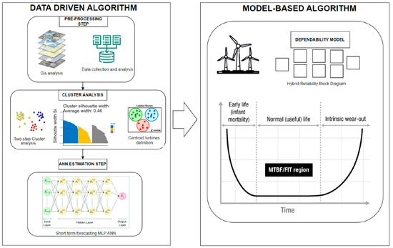 This section outlines the methodology employed for short-term forecasting of power and energy output in wind power plants. As illustrated in Figure 1, the proposed model integrates two distinct algorithms: a data-driven module, structured into three stages, and a dependability module that employs stochastic modeling to assess the reliability and availability of wind turbine generators (WTGs).