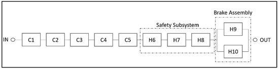 The reliability of each block is generally modelled by means of a mathematical formulation (see Equations (5)–(8)) that depends on the component (or subsystem) failure characteristics. Finally, the reliability of the system/process can be computed by calculating the probability of all the paths of the RBD.