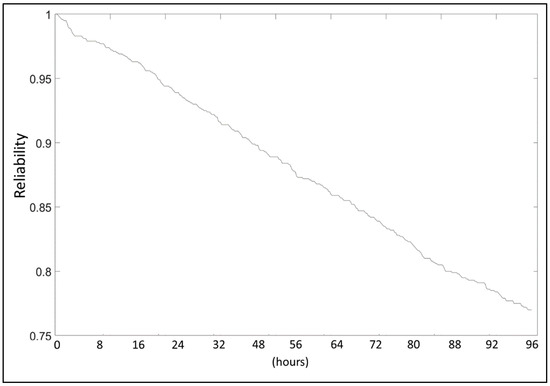 One of the main attributes of dependability is reliability, which measures the probability of a system working with no failures for the entire time of observation, known as mission time. The mathematical formulation of system reliability is shown in Equation (4):