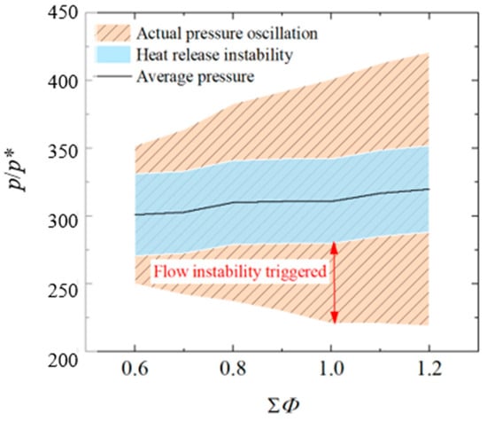 Building upon the preceding discussion regarding the intensity of heat release instability, it can be inferred that flow instability induced by heat release instability plays a dominant role in generating strong pressure oscillations. It is recommended that Figure 10 be presented in the format of Figure 11 to illustrate this distinction, which serves as a fundamental difference between supersonic and subsonic combustion instabilities. This distinction warrants special attention in conducting control-oriented research. Control methods for supersonic combustion instability should prioritize suppressing flow instability.