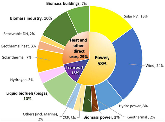 Moving forward, the need for clean and sustainable energy is a necessity in the present moment and the future [14]. To achieve this, multiple options for renewable energies are available such as solar, hydropower, biomass, biofuel and wind energy. Figure 1 shows a forecasted global renewable energy map in the year 2050, with a total final energy consumption of 222 exajoules (EJ) [15]. Apart from wind and solar, liquid biofuel is forecasted to be the third-highest contributor towards renewable energy, and it will constitute 10% of global renewable energy sources by 2050. Liquid biofuels such as biogas, biodiesel and bioethanol serve as excellent sources of renewable energy to curb the depletion of fossil fuels and the disadvantages that come along with the usage of fossil fuels simultaneously [16]. This is due to the easy availability of raw materials and reactants, the high energy density of biofuels and the pre-existing infrastructure for biofuel production.