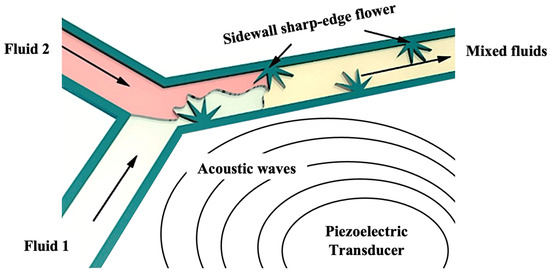 Acoustic-based active micromixer with flower-like sharp-edged pattern (adapted from [45]).
