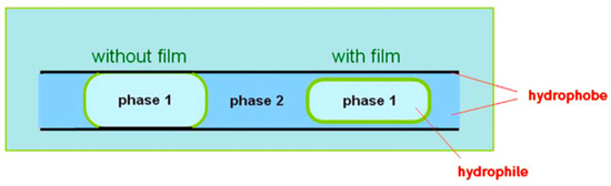 - Liu, Y.; Yao, C.; Chen, G. Gas–liquid–liquid slug flow and mass transfer in hydrophilic and hydrophobic microreactors. Chin. J. Chem. Eng. 2022, 50, 85–94. [Google Scholar] [CrossRef]