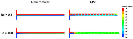 Micromixers are an essential component to achieve the mixing of two or more reactants in a microchannel reactor [50]. Micromixers determine the mixing uniformity of reactants [51]. Thus, the efficiency of micromixers influences the performance of the microchannel reactor [52]. Research focusing on processes at the microscale level has unlocked possibilities to control reaction parameters. Hence, various biochemical processes such as enzyme bioassays, nanomaterial synthesis and biochemical production involve the usage of microscale reactors to complete the process reactions. The evolution of microscale technology over the past two decades engendered homogeneous micromixing of two or more reactants to be an essential part of the process [53]. In microchannel reactors, slow flow rates at low Reynolds numbers below 10 and small microchannel dimensions (0.01 mm to 1 mm) result in laminar flow throughout the microchannel [54,55]. Hence, achieving good micro-level mixing of reactants is often dependent on strong molecular diffusion-based mixing, to attain homogeneous mixing [56].