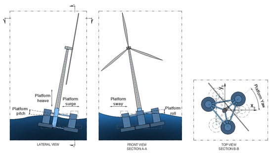 - Robertson, A.; Jonkman, J.; Masciola, M.; Song, H.; Goupee, A.; Coulling, A.; Luan, C. Definition of the Semisubmersible Floating System for Phase II of OC4; Technical Report 60601; National Renewable Energy Lab. (NREL): Golden, CO, USA, 2014. [Google Scholar] [CrossRef]
