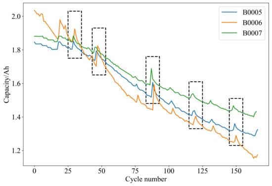 - Lyu, G.; Zhang, H.; Zhang, Y.; Miao, Q. An interpretable remaining useful life prediction scheme of lithium-ion battery considering capacity regeneration. Microelectron. Reliab. 2022, 138, 114625. [Google Scholar] [CrossRef]