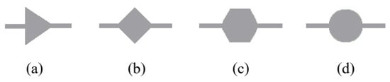 Ekramian et al. [75] conducted a study comparing the thermal performance of absorber risers in five different positions, as illustrated in Figure 4. The highest thermal efficiency was achieved by the model depicted in Figure 4a. The efficiency progressively decreased as the riser was positioned lower (from top to bottom surface of the absorber). This was attributed to the configuration in Figure 4a having a larger absorption surface compared to the other configurations. Additionally, Figure 5 shows four riser shapes—triangular, square, hexagonal, and circular—and their impact on the heat transfer process. Of these, the circular riser yielded the highest thermal efficiency, primarily because heat transfer at sharp corners tends to be weaker. The efficiency of the circular riser was 38.4%, 11.2%, and 6.6% higher than that of the triangular, square, and hexagonal risers, respectively.