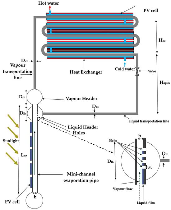 - Diallo, T.M.; Yu, M.; Zhou, J.; Zhao, X.; Shittu, S.; Li, G.; Ji, J.; Hardy, D. Energy performance analysis of a novel solar PVT loop heat pipe employing a microchannel heat pipe evaporator and a PCM triple heat exchanger. Energy 2018, 167, 866–888. [Google Scholar] [CrossRef]