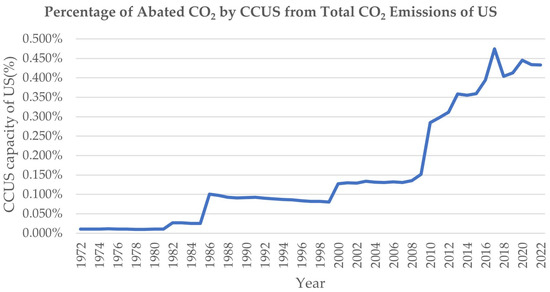 The percentage of reduced CO2 by CCUS from the US’s total carbon emission [3].