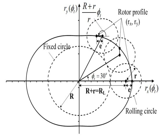 - Shung, J.B.; Pennock, G.R. Geometry for trochoidal-type machines with conjugate envelopes. Mech. Mach. Theory 1994, 29, 25–42. [Google Scholar] [CrossRef]