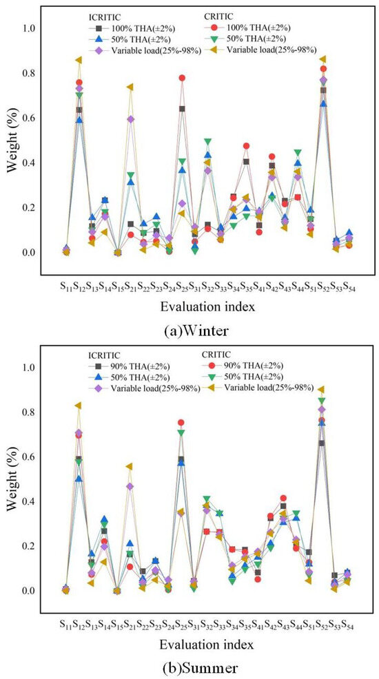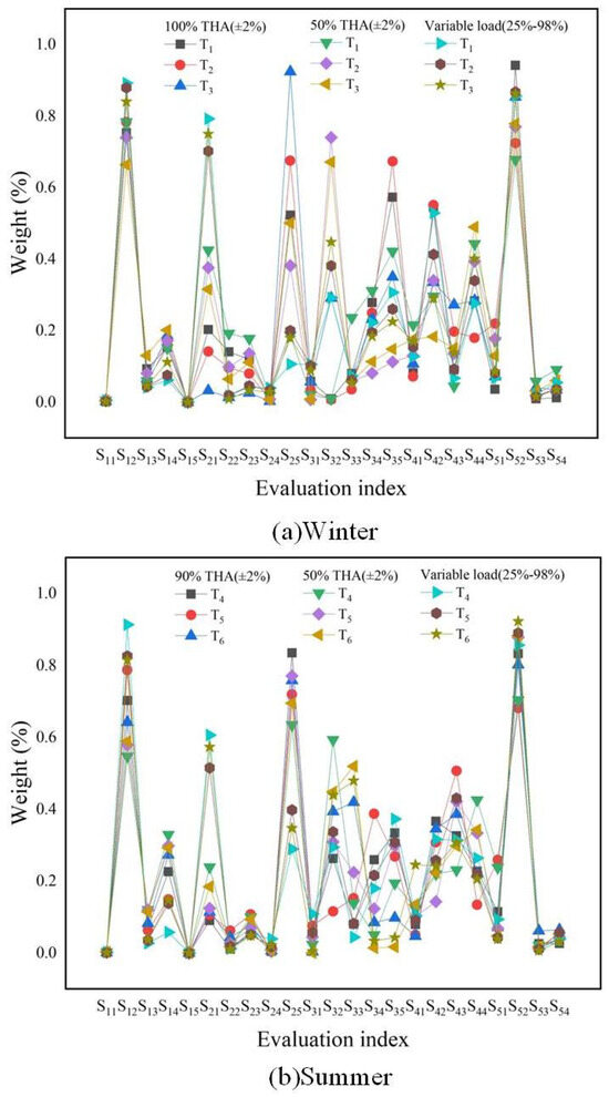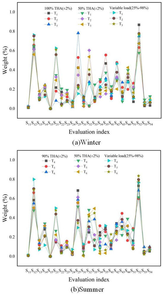 According to Table 3 and Table 4, the weight of the evaluation index may vary depending on the unit load changes in different environments. Therefore, this paper holds significance for the comprehensive evaluation of coal-fired units under varying loads.
