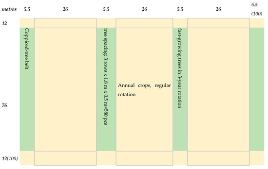 Agroforestry systems, i.e., combining tree cultivation with some form of annual agricultural production on one plot of farmland, can fundamentally contribute to making agriculture more sustainable and diverse. Therefore, in the new Common Agriculture Policy (CAP, 2022–2027), agroforestry systems are recommended for national strategic plans as a measure to fulfil multiple agricultural and environmental policy goals [8]. Unfortunately, agroforestry with fast-growing trees in short rotations (coppice), which can be an important source of biomass for energy and the bioeconomy, is often omitted from subsidy schemes, or there are legislative, economic, and nature protection limitations for their establishment.