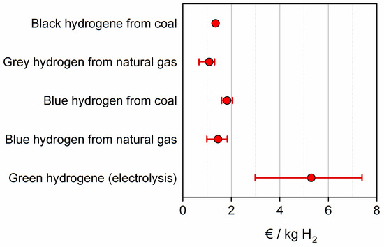 Hydrogen production, storage, and transportation costs are much higher in comparison to traditional energy sources. It is expected that hydrogen costs will decrease with time; nevertheless, the required investments to develop a hydrogen infrastructure are a major challenge [69].