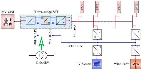 - Das, D.; Hrishikesan, V.; Kumar, C. Smart transformer-based hybrid lvac and lvdc interconnected microgrid. In Proceedings of the 2018 IEEE 4th Southern Power Electronics Conference (SPEC), Singapore, 10–13 December 2018; pp. 1–7. [Google Scholar]