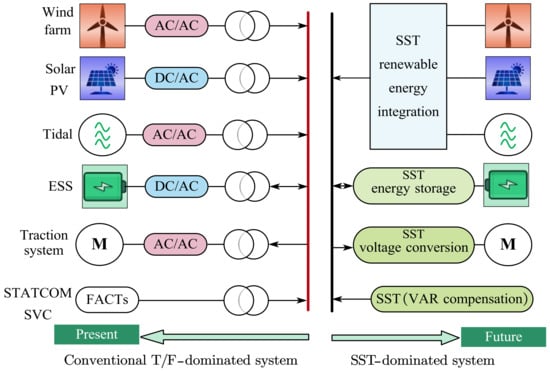 - She, X.; Huang, A. Solid state transformer in the future smart electrical system. In Proceedings of the 2013 IEEE Power & Energy Society General Meeting, Vancouver, BC, Canada, 21–25 July 2013; pp. 1–5. [Google Scholar]