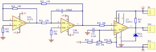 where is the reference level of the same phase input terminal of the comparator. Adjusting the potentiometer RP4 can change the size of this value. In this scheme, the integrated operational amplifier uses TL972 [11] and the voltage comparator uses LM311 [12].