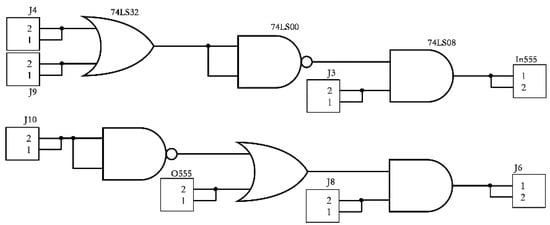 The circuit schematic diagram of this scheme using logic gate circuits 74LS00 [14], 74LS08 [15], and 74LS32 [16] is shown in Figure 7.