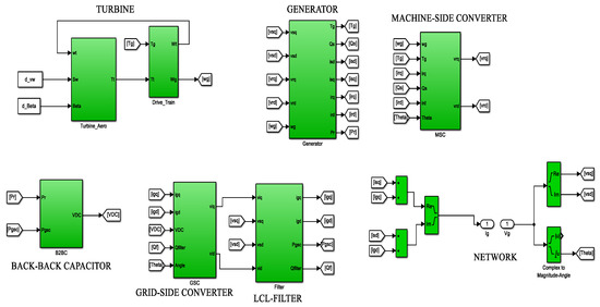 All of the sub-systems explained so far were coupled together to form the DFIG-WEC system in Matlab/Simulink. The Simulink model is shown in Figure 8.