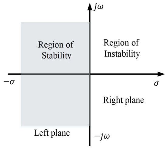 where is the real part that represents damping, and is the imaginary part that yields the oscillation frequencies of the eigenvalues. Complex conjugate eigenvalues are used to analyze the behavior of the oscillations, and a negative real part results in decreased oscillation, whereas a positive real part results in increased oscillation. In this study, an eigenvalue objective function was defined to damp the electromechanical modes (EMs) and improve damping in the power grid system by moving the eigenvalues to the region of stability (left plane of the complex S-plane). This oscillation behavior is expressed on the complex S-plane, as shown in Figure 14.