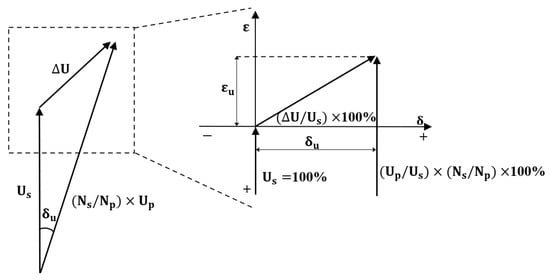 Herein, is the ratio error of the voltage, and is the phase displacement between the primary and secondary voltages. When the secondary voltage is higher than the rated transformation ratio, ε is positive, and when the phase of the secondary voltage leads the phase of the primary voltage, the phase displacement is expressed as positive.