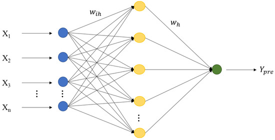 In the figure, (i = 1, 2, …, n; h = 1, 2, …, m) are the connection weights between the input layer and the hidden layer; is the connection weight between the hidden layer and the output layer; n is the number of neurons in the input layer.