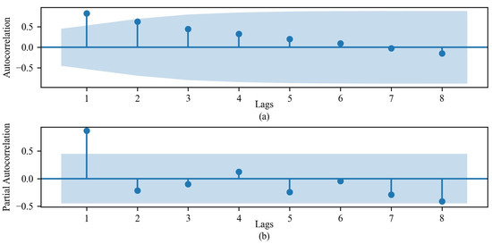 Autocorrelation and partial autocorrelation graphs of time series. (a) ACF plot; (b) PACF plot.