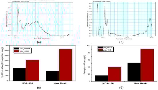The ultra-highly cross-linked adsorbent resin with rich microporous medium-pore distribution significantly improves the adsorption/desorption performance for medium and high concentrations of VOCs, which can be seen in the pore size distributions of the new resin and the commercial resin; the comparison of adsorption and desorption performances is shown in Figure 3.