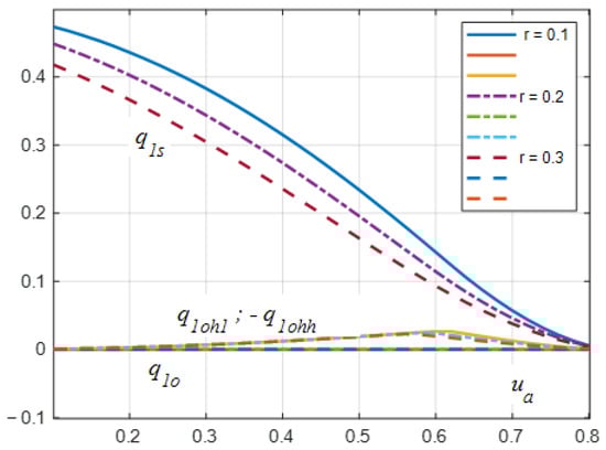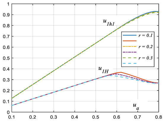 It should be noted that the maximum power value occurs for uninterruptible current flow for ua ≈ 0.48. This finding is important for the efficiency of power transfer in the circuit. Obviously, as the resistance r increases, the efficiency of the circuit decreases.