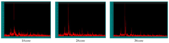 Through the observation of the cross-sectional appearance of the cores in Figure 6, it can be seen that the residual oil content in cores 1# and 2# is relatively less compared to cores 3# to 6#. However, a small amount of residual oil can still be observed. Cores 1# and 2# are located in the strong flushing zone, while the other cores are located in the matrix permeation zone and the low-saturation oil zone. It is inferred that cores 1# and 2# may have experienced a reduction in residual oil content due to the high-intensity injection, making it difficult to observe residual oil on the rock surface.