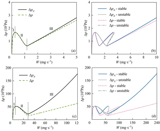 As a constant pressure pump (with a pressure curve slope of 0) is used in this system, the stable operating point of the parallel two-channel system appears only when the sum of the slopes of the channel pressure drop curves exceeds zero, i.e., k ≤ 0, according to Akagawa et al. [7].